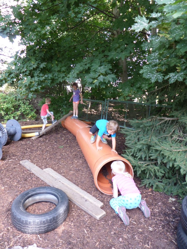 Den Kindern steht ein schöner, grosser Garten mit altem Baumbestand und vielen Büschen zur Verfügung, in welchem die Kinder individuelle Spielmöglichkeiten entwickeln können.